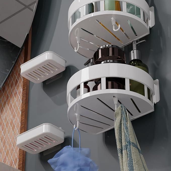 Product Name: Bathroom Shelves with Hooks (Pack of 2) Package Contains: Pack of 2 Bathroom ShelvesColor: Random ColorMaterial: PlasticCombo: Pack of 2Weight: 400 Gm